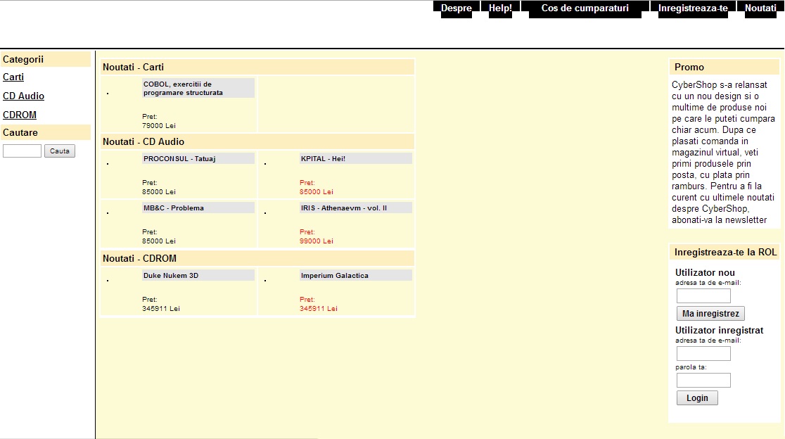 Deși nu sunt informații exacte despre prima comandă online din România, cybershop.ro este recunoscut ca fiind primul magazin online din țara noastră. Acesta a apărut ceva mai târziu, în 1997, și comercializa CD-uri cu muzică, potrivit gadget.ro. Anii de început ai comerțului virtual românesc nu au fost remarcabili, iar multe din magazinele lansate au avut mari dificultăți în a supraviețui în acest nou mediu. Abia în anul 2000 au început să apară site-uri ce comercializau produse IT și tot atunci a fost lansat și Okazii.ro, primul site de licitații online din România care operează și în ziua de astăzi. Un an mai târziu întră pe piața și Emag.ro, liderul pe piață de astăzi, iar din 2004 este posibilă și plata cu cardul online, fiind implementat standardul de securitate 3D Secure de către Visa şi MasterCard.