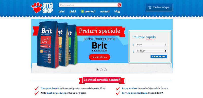Filtrul de pe prima pagină a magazinului Ama-shop.ro te ajută să ajungi rapid în secțiunea care te interesează. Astfel, alegi „câini” sau „pisici” în primul câmp al formularului-filtru și, în funcție de această opțiune, ți se vor afișa brand-urile care comercializează mâncare pentru una sau alta dintre categoriile de animale de companie.