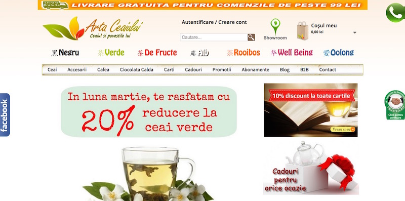 Și Artaceaiului.ro a adoptat unul dintre logo-urile TRUSTED noi și l-a plasat în dreapta site-ului, pe o poziție fixă. Alături de simbolul pentru contact prin telefon (tot în nuanțe de verde), logo-ul TRUSTED atrage atenția clientului și-i oferă încredere în acest magazin online.