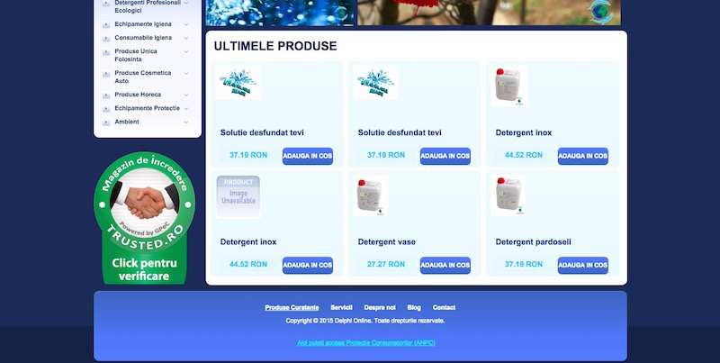 Delphionline.ro este unul dintre primele magazine proaspăt atestate care afișează un format nou al logo-ului TRUSTED.ro. Am creat 4 versiuni ale acestui logo, în așa fel încât cel puțin unul să se încadreze perfect în design-ul site-ului și mențiunea „Click pentru verificare” să rămână lizibilă, deoarece este cel mai important element pe care trebuie să-l observe consumatorul.