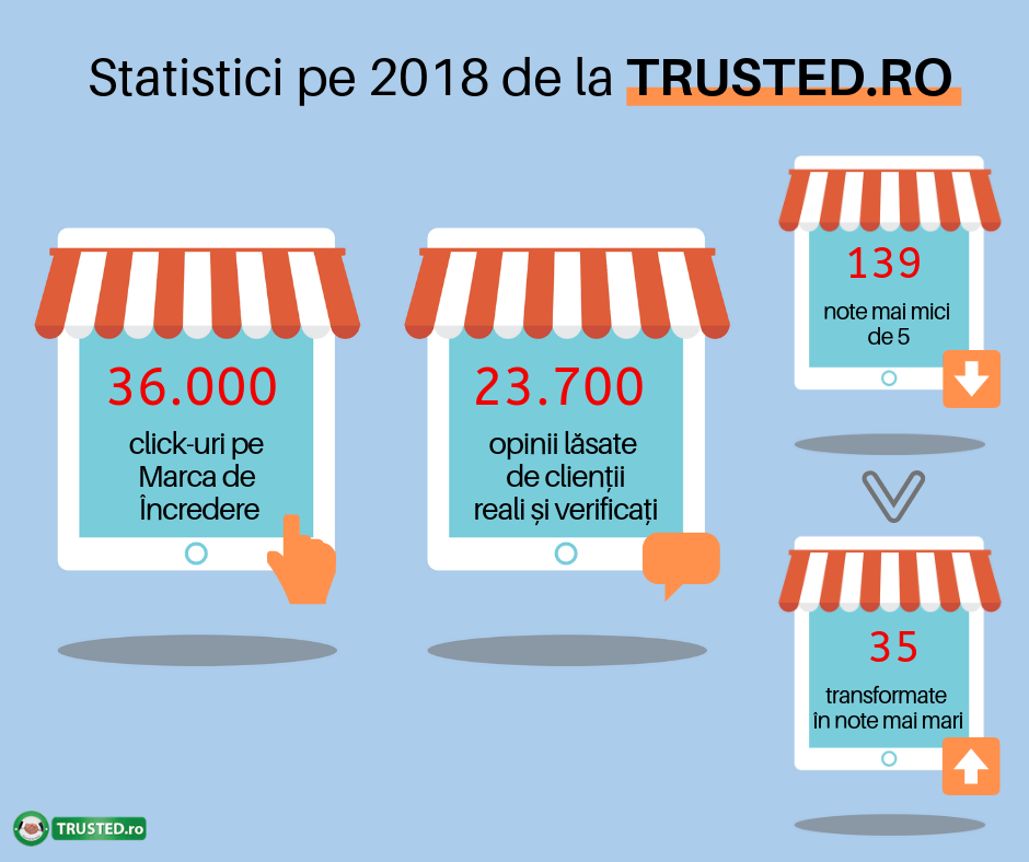 În anul care se încheie, 36.000 de vizitatori ai magazinelor online atestate au dat click pe Marca de Încredere vizibilă în site-uri. Majoritatea dintre clienții care au dat click au făcut acest lucru pe site-urile magazinelor online administrate de companii mari, care au și magazine fizice.